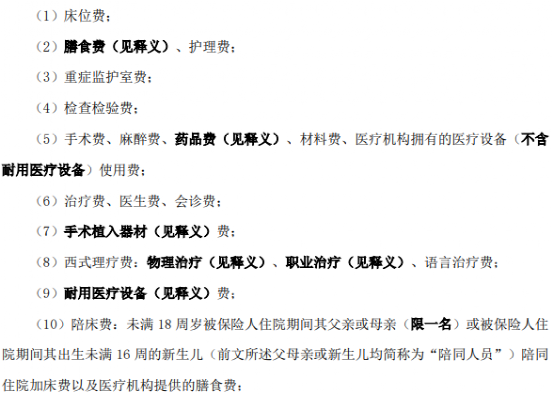 1-这款产品的医疗费用涵盖了床位费、膳食费、护理费、重症监护费、医生费、治疗费、会诊费、陪床费等,同时重疾医疗费用还包括质子重离子费;
