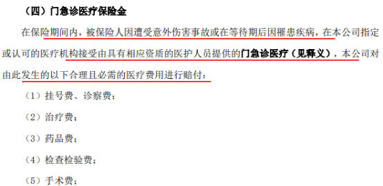 1-被保人因疾病在指定的医院接受门急诊医疗的,产生的门急诊医疗费用,扣除免赔额后100%报销;