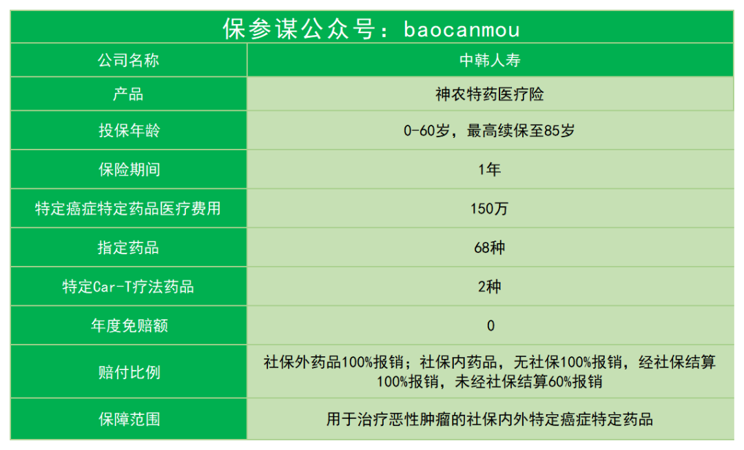 保参谋中韩神农特药医疗险医疗险癌症特定药品 |