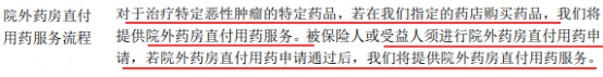 3-但这些药品需要在约定医院或保险公司指定药店购买,且购药流程符合“院外药房直付用药服务流程”。