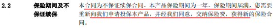 1-这是一款一年期的医疗险,续保需要申请,并经保险公司审核。