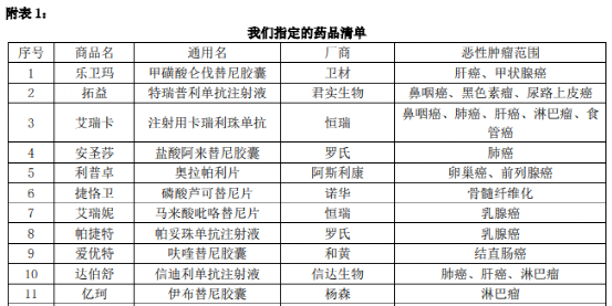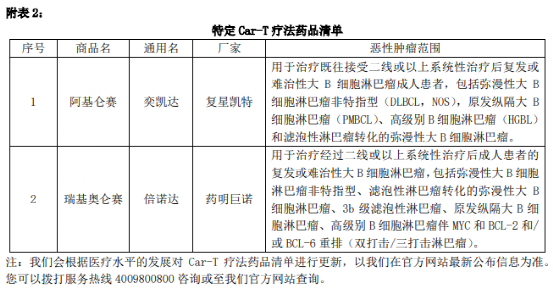 1-指定药品清单共68种,特定Car-T疗法药品清单共2种;