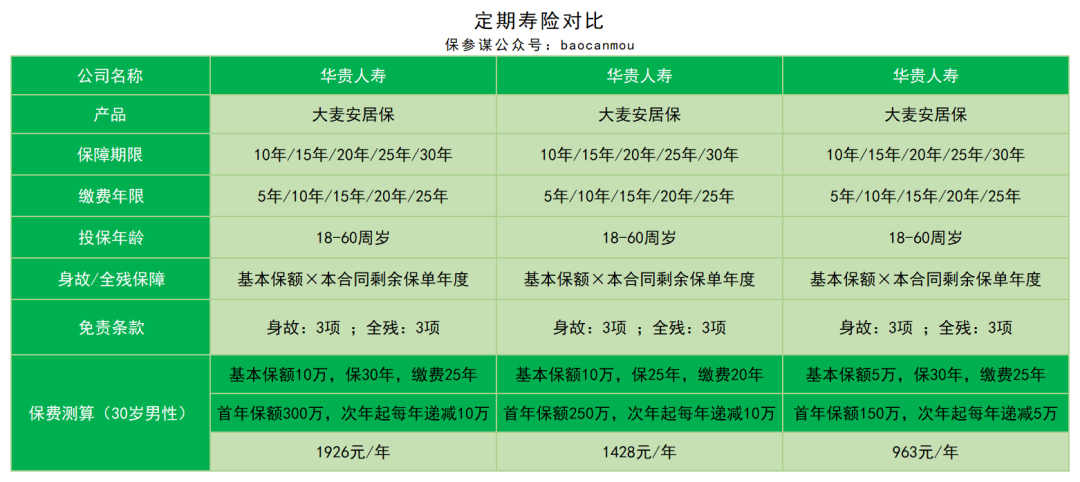 2-定寿就是死亡或全残赔钱的产品,免责条款越少越好,华贵大麦在这一点上一直很有竞争力。
