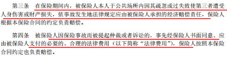 1-被保人在公共场所因疏忽或过失导致第三方人身伤害或财产损失的,或被保人因保险事故被提起仲裁或诉讼的,都可以赔付;