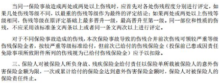 2-身故赔付保额,伤残根据残疾等级,按比例赔付;