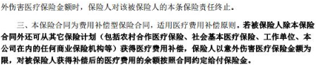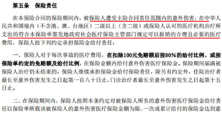 2-意外医疗报销限社保内医疗费,免赔额100元,扣除免赔额按100%报销。