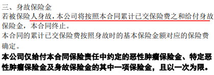 2-恶性肿瘤/特定恶性肿瘤/身故保险金,只能赔其中一项;