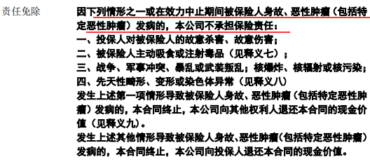 3-下面是这款产品的免责条款,身故与疾病共用保额,比起常见的免7条,还是比较少的。