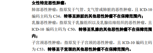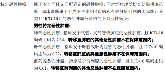 4-特定恶性肿瘤分为男性特定恶性肿瘤和女性特定恶性肿瘤,具体如下: