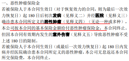 恶性肿瘤:赔付1次,赔付保额