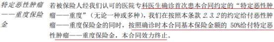 2-也就是说,如果罹患的恶性肿瘤是特定重度恶性肿瘤,共赔付150%;