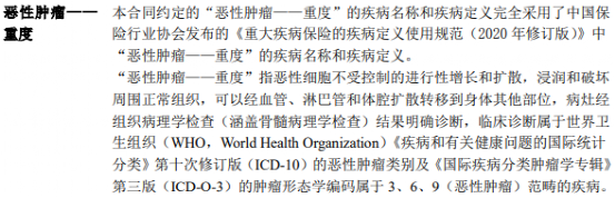 2-重度恶性肿瘤就是重大疾病中的一种,定义都是统一规定的,没有什么特别之处:
