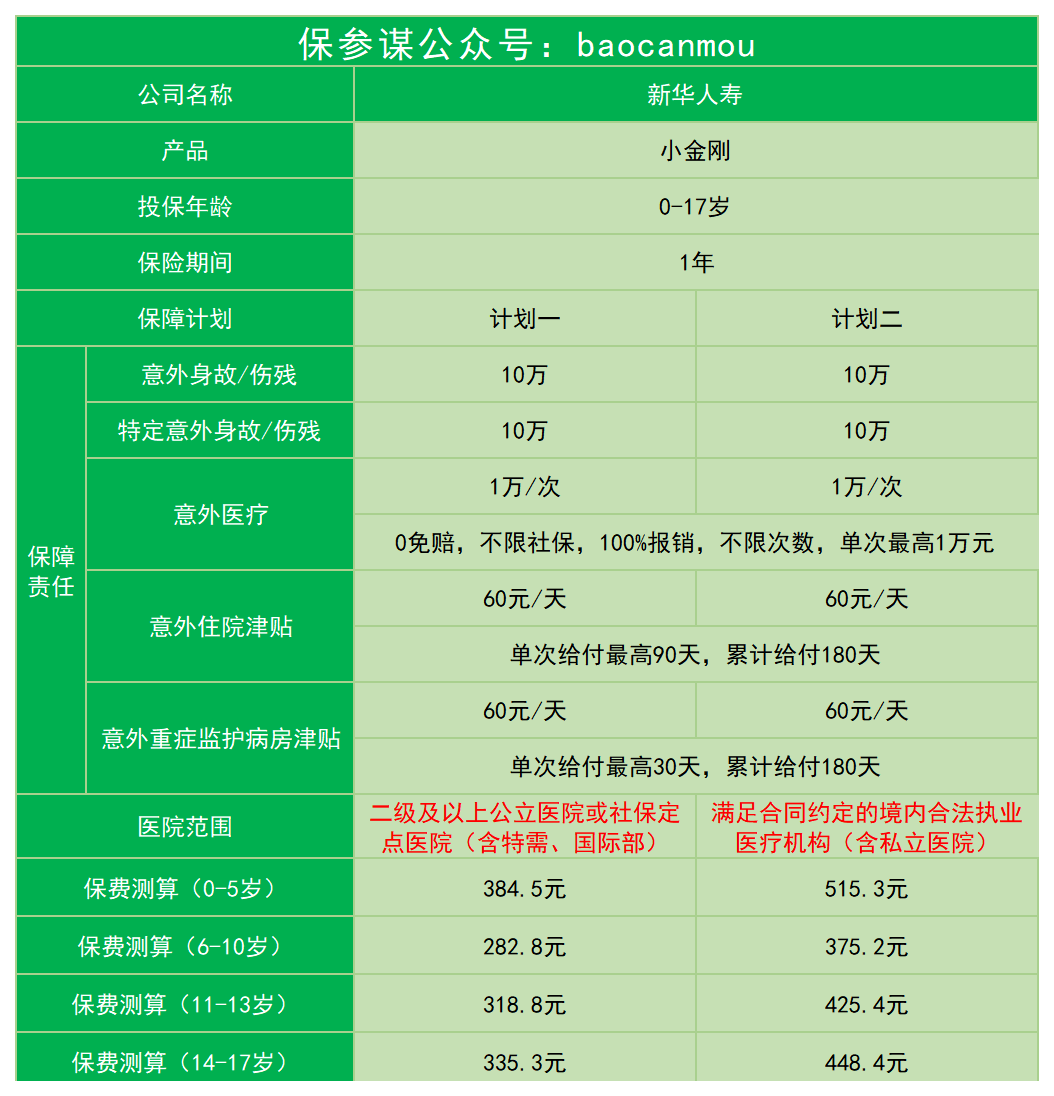 随着孩子年龄越来越大,各种好奇心,探索心也会增强。因此,很多父母也会给孩子买上一款意外险。今天测评的产品为:新华小金刚少儿意外险,是一款专门针对18岁以下的青少年开发的意外险。