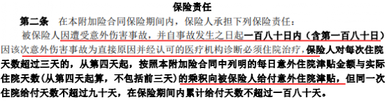 2-意外住院津贴仅给付自意外发生之日起180天内的住院;
