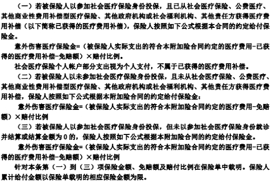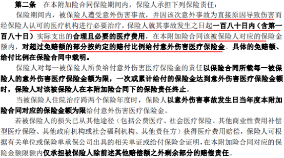 3-意外医疗免赔额100元,限社保范围内,经社保结算100%报销,未经社保结算80%报销。