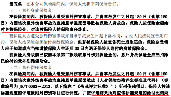 1-被保人遭受意外伤害事故,且在180天内因该意外事故导致身故/伤残赔付;