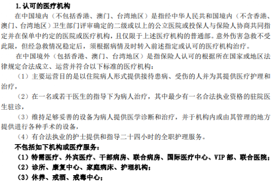 1-这款产品的医疗机构为二级及以上公立医院普通部或保险公司认可的医疗机构;