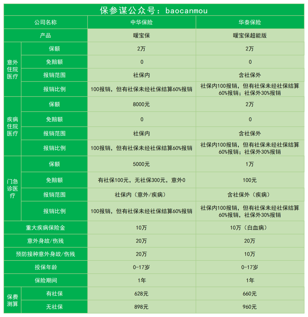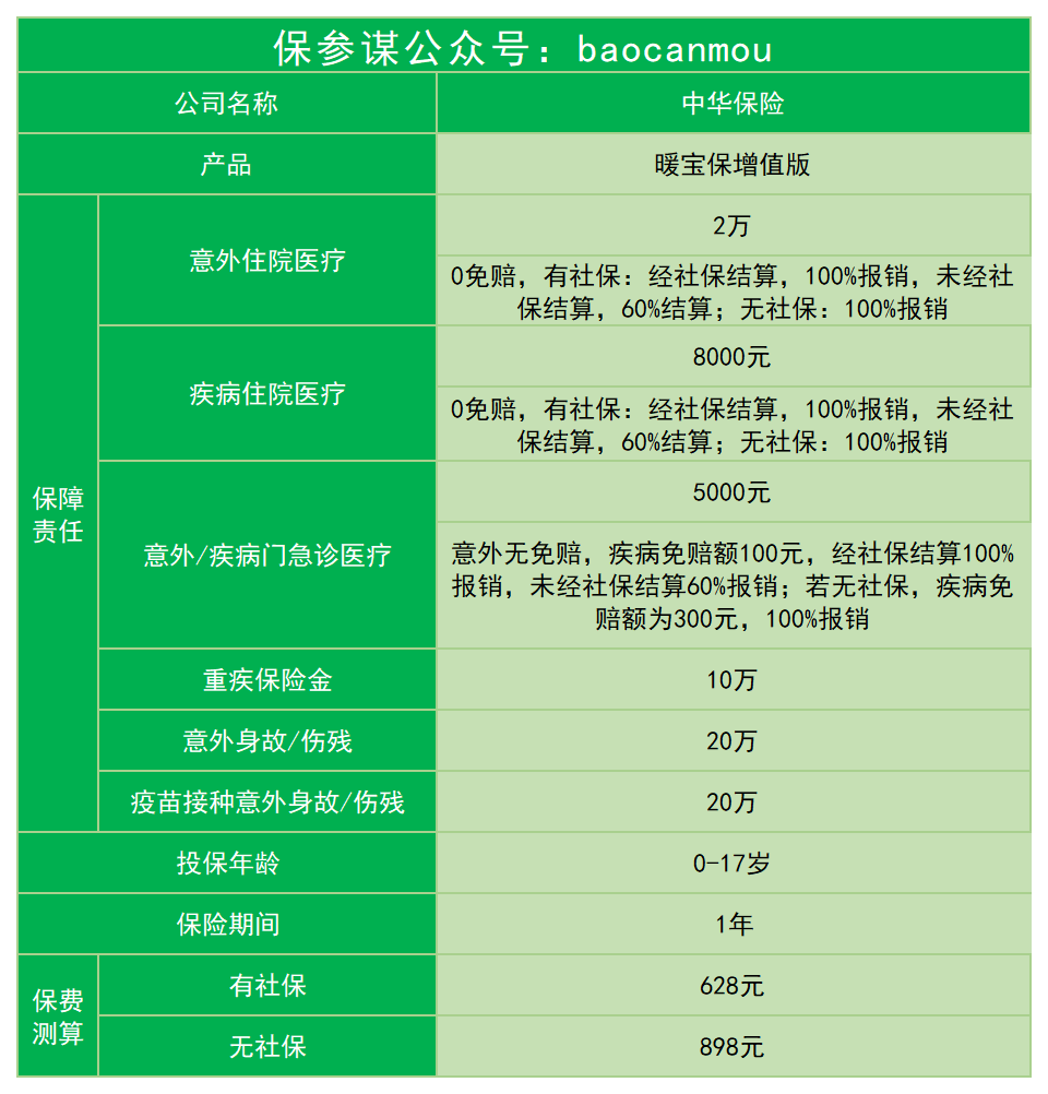 保参谋中华暖宝保小额医疗险门诊责任儿童保险 |