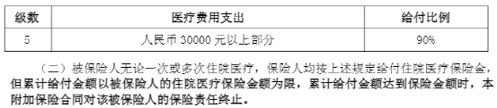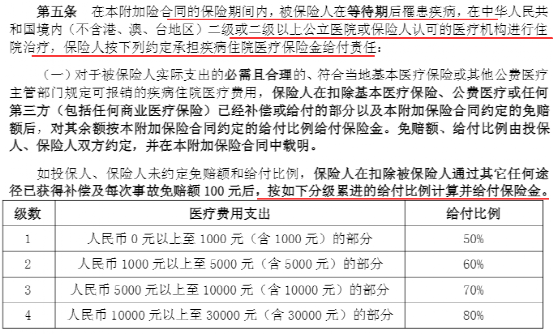 3-这款产品的医疗责任一共分成5级,具体分级的给付标准见上表。整体而言花费越多,报销比例越大。