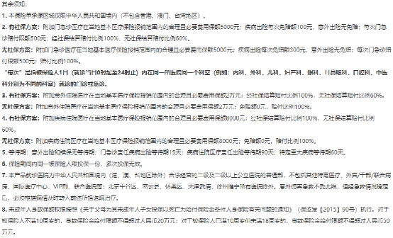 2-如果投保的是无社保版本,那么责任就是:无社保版本保额8000元,免赔额300元,限赔额500元/次。