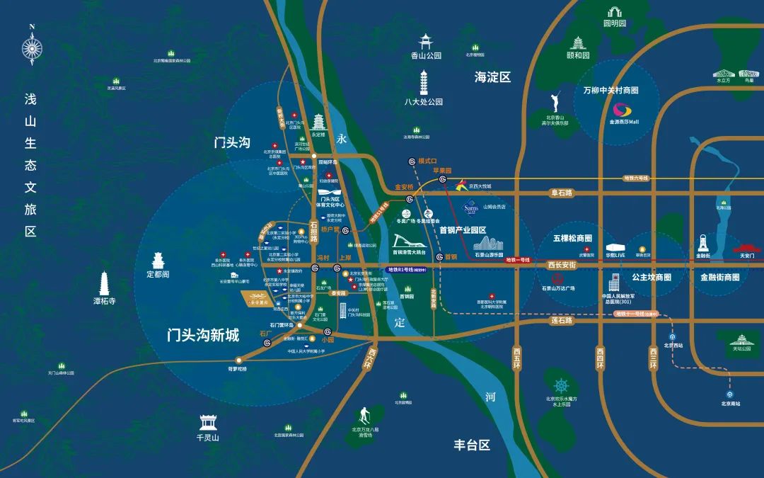 未来的门头沟新城将成为门头沟的新中心区域,门头沟南部新城依靠莲石路,主要辐射北京西南部如首钢园、五棵松商圈、丽泽商圈、丰台科技园等产业、商业人口外溢。