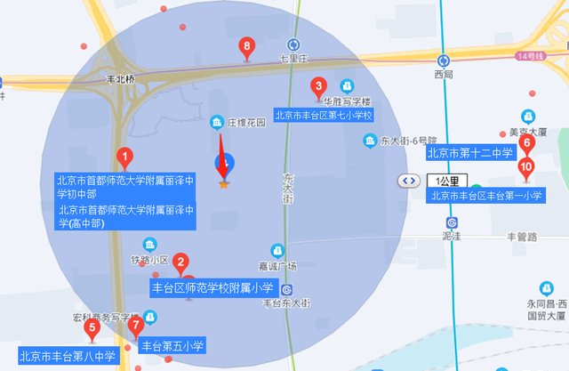 小学中学有区重点类前三名的丰台第一小学、丰台第五小学、丰台区师范附属小学,以及市重点的北京市第十二中学、丰台二中、首都师范大学附属丽泽中学和丰台八中。注:最终学校以教委划片为准