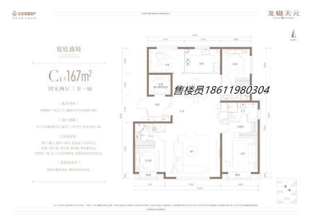 待售户型:117-128-167平,均为四居室