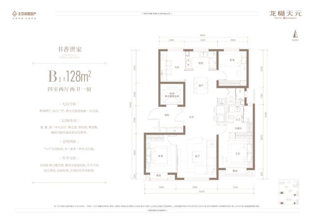 全四居室,全三面宽,全部方正、全部通透,全明格局。