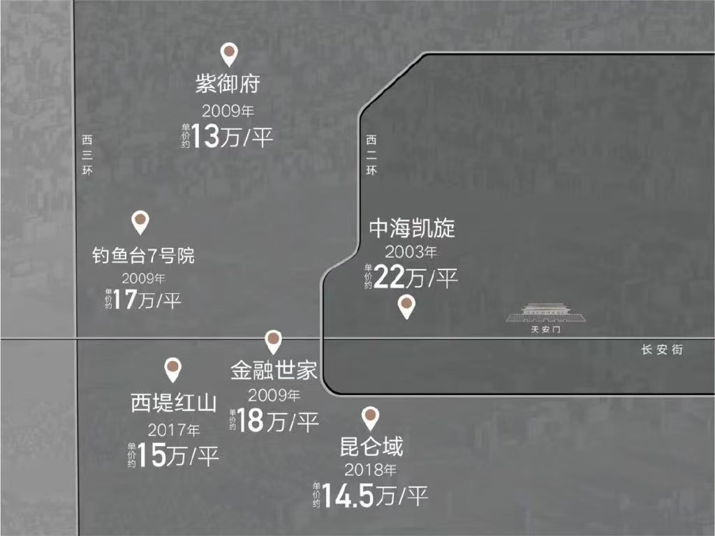 北京受“四环内限制住宅用地供应”的政策影响,土地供应量锐减,但二环寸金寸土的顶配生活是塔尖圈层的生活共识,商圈环伺、交通纵横、学府公园等北京全球化生活的美学符号,在此聚集。相比而言,西二环、西三环、西城、海淀南住区皆为20年传统豪宅,房源甚少。且新一代高净值人群的当代国际审美与传统豪宅风格呈现的差距明显,内城品质改善需求亟待填补。