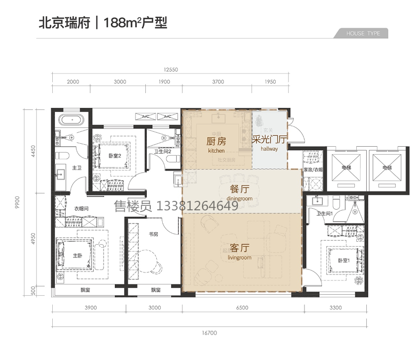 16.7米的面宽,9.9米的进深,打造出无限接近于1:0.618的黄金比例空间。