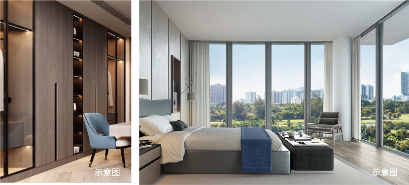 通过提升套房的功能性,比如三段式主卧盥洗室,男女主人分区互不打扰;预留约1.8米台面区域,办公休闲随时切换;宽景飘窗,更是二人世界的下午茶时光,即便出现特殊情况,一个卧室都承载起生活的基本功能所需。