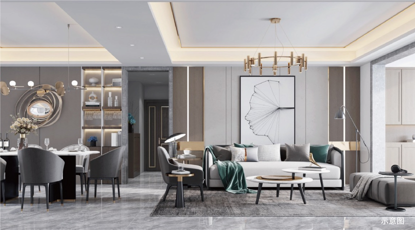 细心的买房人一定能发现,155平米户型的客厅采用的是落地窗设计,为客厅带来更好的采光和观景效果,同时也将南北通风的功效发挥到最大。