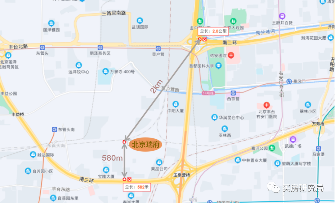 北京瑞府位于丰台区,南二环与南三环之间,纪家庙的万柳园小区北侧。