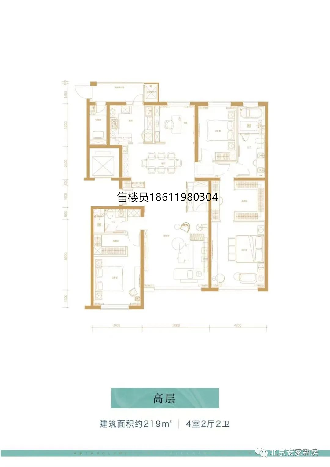 高层219平:南、北朝向,4室2厅2卫,2450万/套,分布于楼栋C1号楼(现11号楼)。
