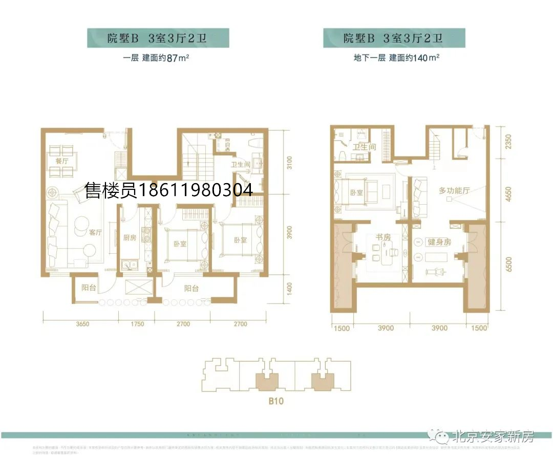 平墅B户型137平:南、北朝向,3室2厅2卫,1600万/套,分布于楼栋B5(14号楼)、B6(7号楼)。