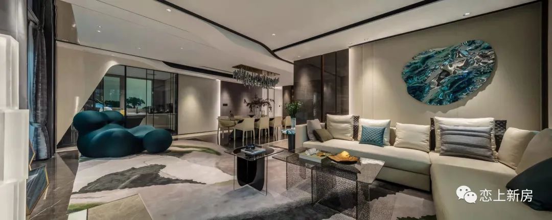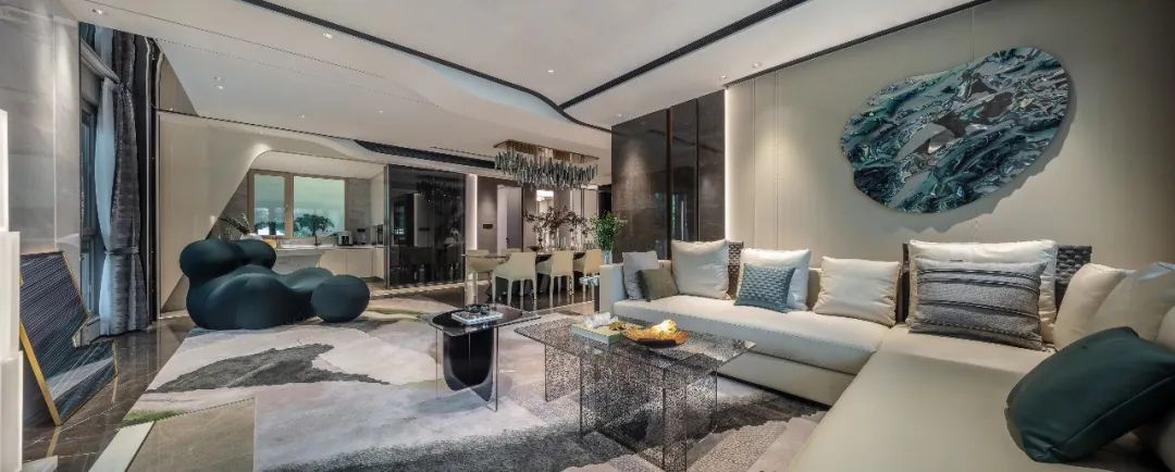超尺度“L”型客厅,餐客相连,舒适动线,优雅生活随格局一展而开,满足私宴、PARTY、会议等多种需求,多种社交场景相互连贯。