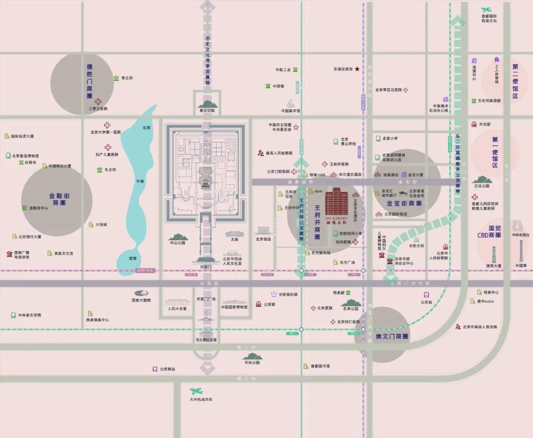 【顶级配套】:占据稀缺资源,周边顶级医疗、教育资源,5分钟坐享王府井、金宝街双商圈,国内顶级医疗、教育、商业购物、酒店及国家级资源“触手可及”;