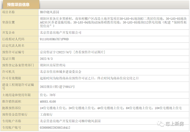 2022年6月3日,位于朝阳区崔各庄的绿城晓风印月取得预售许可证,准许销售面积40883.61平,共5栋楼获批。