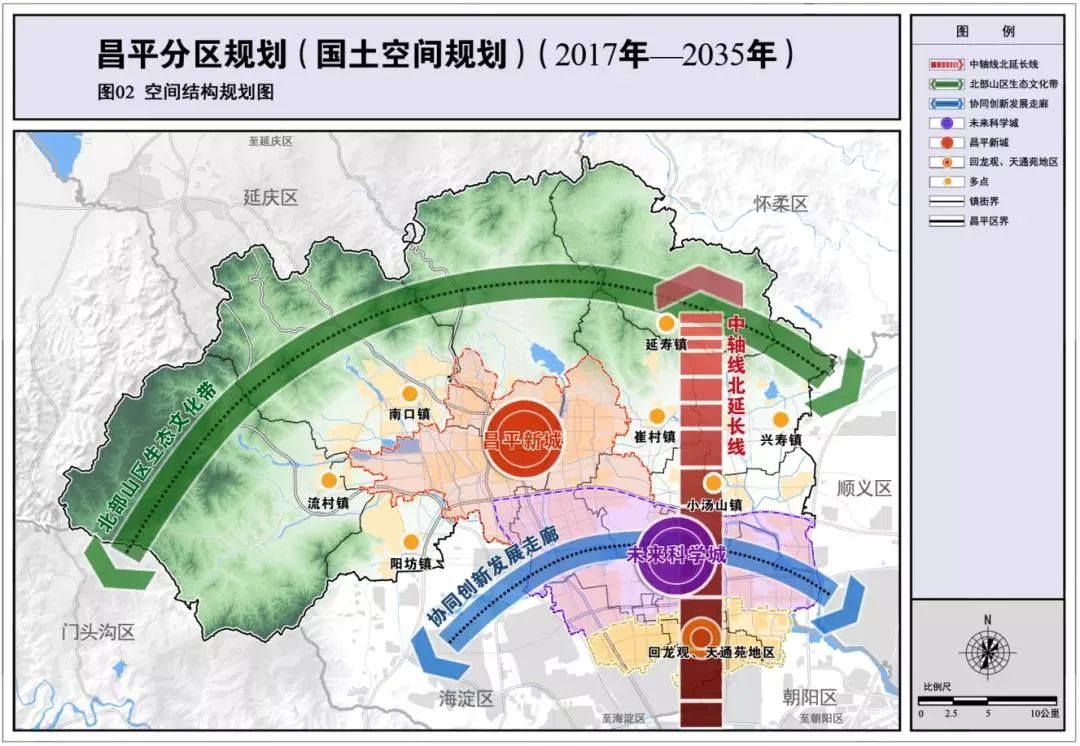 根据《昌平区分区规划(国土空间规划)(2017年-2035年)》文件显示,昌平将构建“一轴一带一廊、两城一区多点“的空间结构。未来昌平将打造首都西北部重点生态保育及区域生态治理协作区,建设具有全球影响力的全国科技创新中心和国际一流的科教新区;发展特色历史文化旅游和生态休闲区以及塑造城乡综合治理和协调发展的先行示范区。