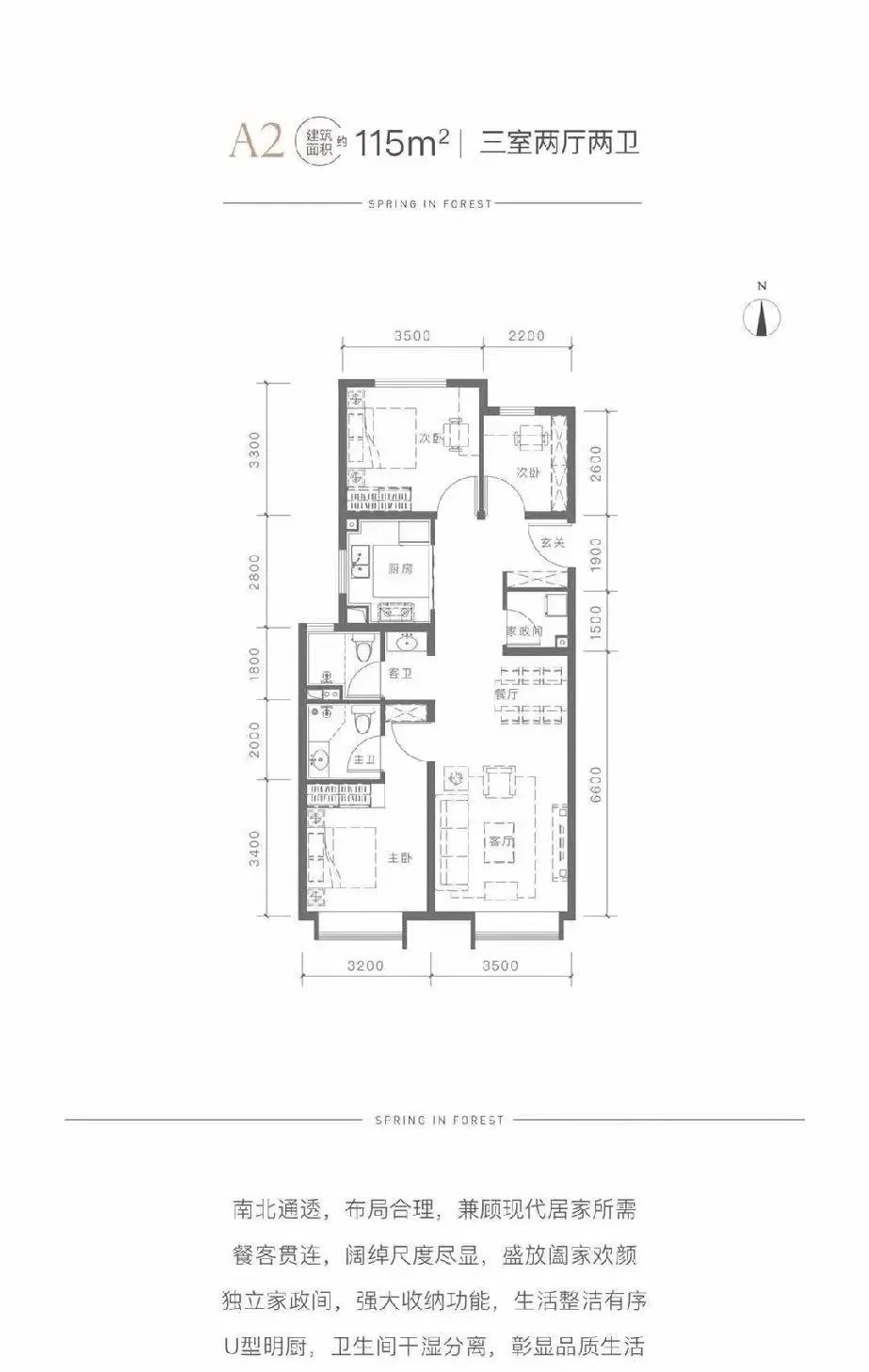 115平的三居,户型方正,南北通透,主卧是套间的设计,配置了两个卫生间,该户型还有小型储藏室的设计,现在各个家庭的生活都需要收纳。