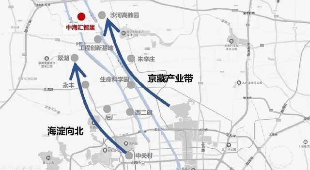 随着海淀的产业核心片区不断北移,昌平也借助未来科学城的政策优势,沿京藏高速一路向北建设产业带。
