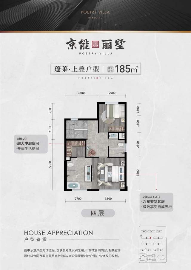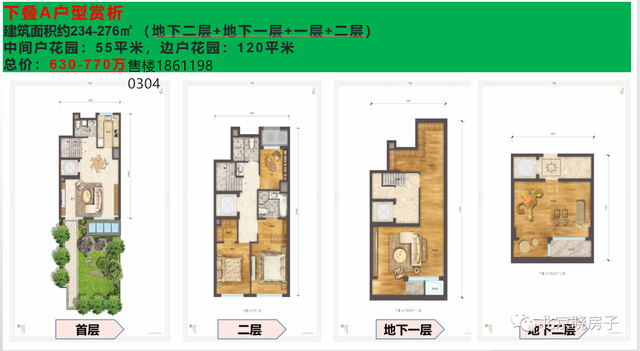 户型是南北通透,上下四层的三居四卫下叠户型,独门独户,私家电梯相连,这个户型在234左右,是一个能够满足三代同堂的全龄家庭定位别墅产品。
