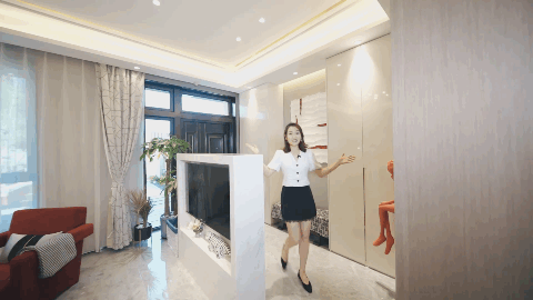 样板间的一层目前是售楼处所在,交房后是会客厅和餐厅的位置,宽厅设计+3.3米层高,感官上感觉开阔舒适,没有压抑感。