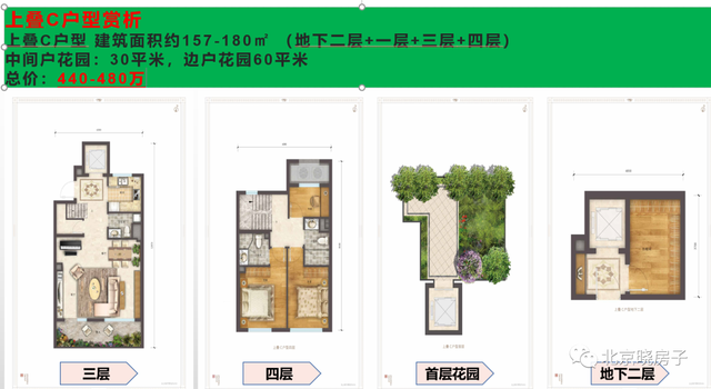 京能丽墅的叠拼产品是几个项目里,总面积最低的,起价也是最低的。