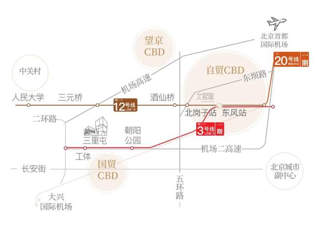 买房就是买生活,配套好才是王道。北熙区第一大优势就是交通方便,规划的3号线和12号线可连通国贸CBD、中关村、望京等城市重要功能区;附近的R4线可连接南北两大国际机场,而且站内还将设置航站楼,一步完成机场登机手续,最快速度到达世界各地。而与东五环接驳的东坝路立交,将极大改善东坝北熙区自贸CBD区域的交通通达性。
