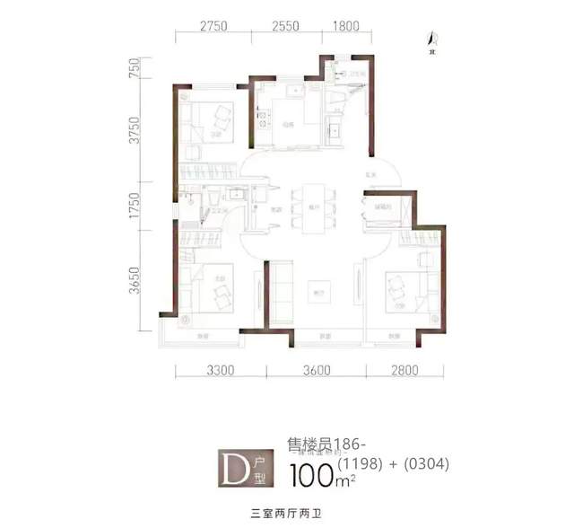 100平米三居室