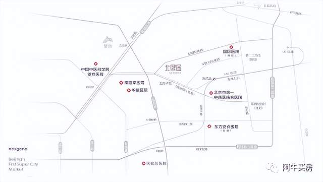北京市第一中西医结合医院(三级)、安贞东方医院(在建),望京医院(三甲)、和睦家(高端私立)、7万国际医院(规划),共同构成集医疗、康复、急救和预防保健为一体的高端医养服务体系