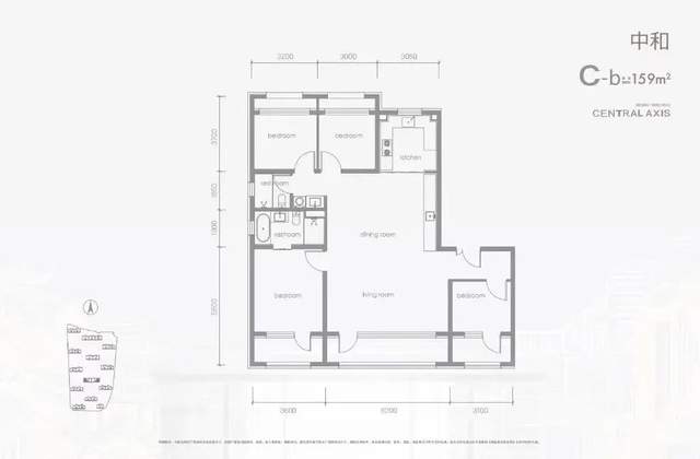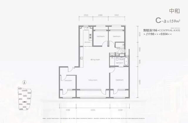 159平四居室:这个户型的位于小区的楼王位置,套数不多,下面两个户型,还是一个中间户合和边户。