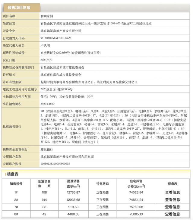 一个月前,越秀星樾开盘售罄,最近,石景山越秀天玥也拿到了预售证,计划本月下旬开盘。