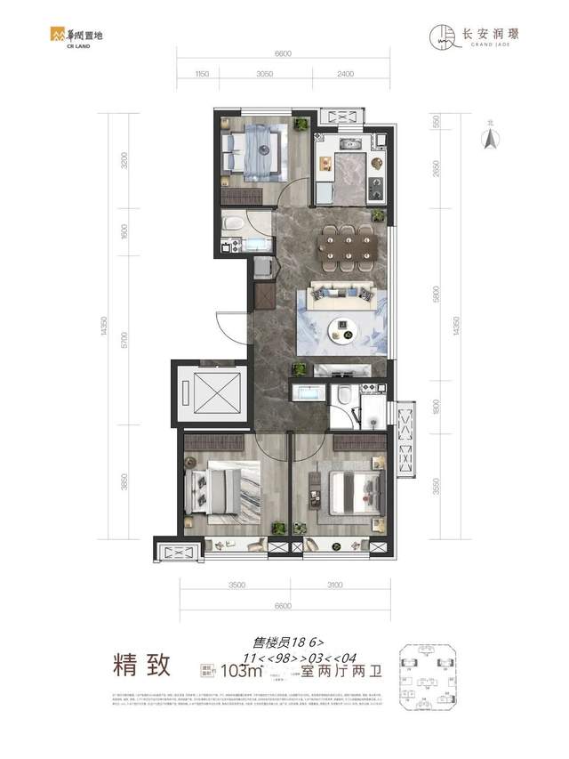 而项目的主力户型是102-130的三居至四居,整体非常纯粹。
